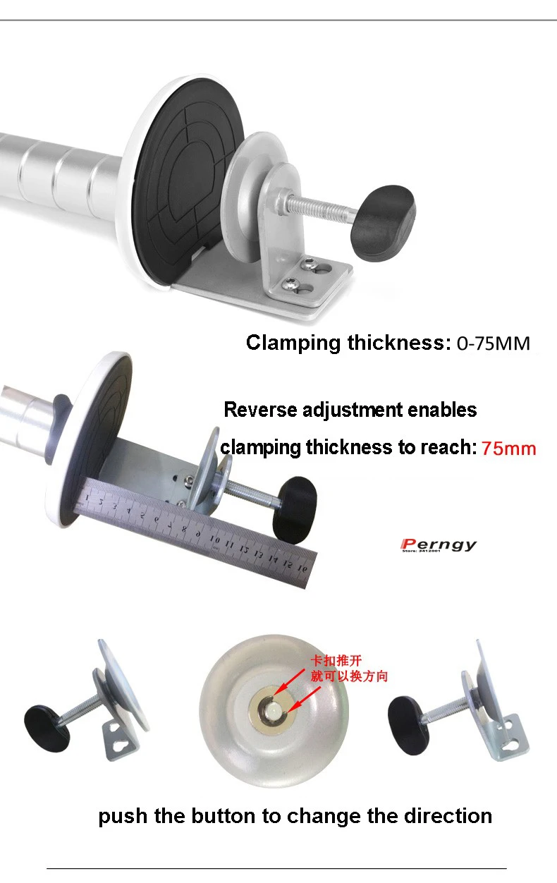 - Основание зажима подходит для стола толщиной <= 75 мм.