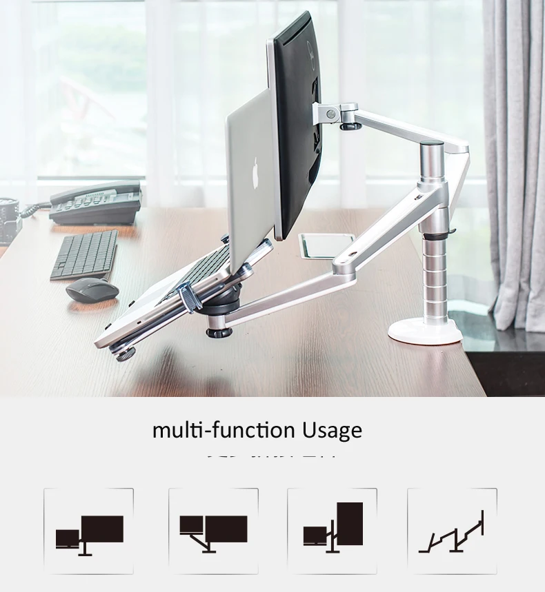 Алюминиевый кронштейн для ноутбука (10-15 дюймов) и монитора (до 25 дюймов) с наклоном и поворотом