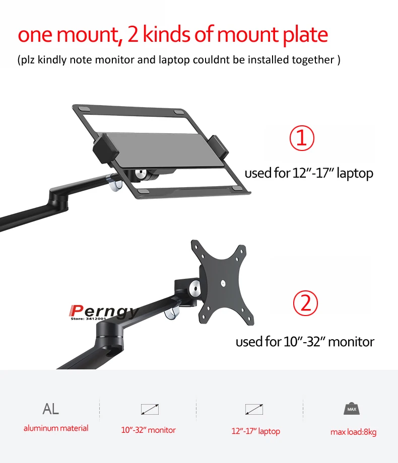 OL-1S Настольный универсальный держатель 2в1 для ноутбука/монитора, до 8 кг нагрузки, алюминиевый сплав