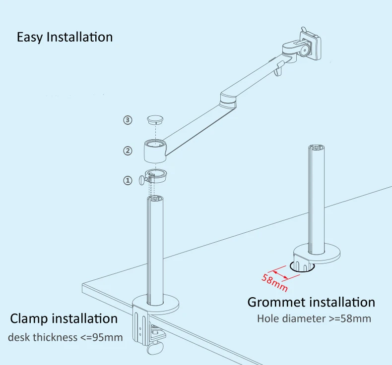 - Толщина стола: 0-70 мм (вариант для толстого стола составляет 0-125 мм).